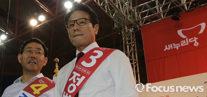 (천안=포커스뉴스) 5일 오후 충남 천안시 유관순체육관에서 열린 새누리당 대표 및 최고위원 선출 충청권 합동연설회에서 당 대표에 출마한 주호영(왼쪽) 후보와 정병국 후보가 합동연설회를 마치고 대화를 나누고 있다.