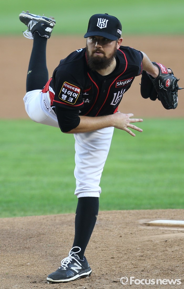 (서울=포커스뉴스) 5일 서울 잠실구장에서 열린 2016 프로야구 kt-LG 경기에서 1회말 kt 선발투수 로위가 투구하고 있다.