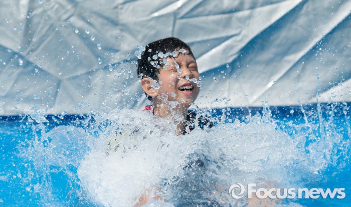 (서울=포커스뉴스) 절기상 입추인 7일 오후 서울 종로구 광화문 세종대로에 설치된 물놀이장에서 어린이들이 즐거운 시간을 보내고 있다.