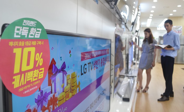 대상은 41인치 이상 TV 70여개 모델과 드럼세탁기 40여개 모델이다. 이들 제품은 지난달 시작된 정부의 '에너지효율 1등급 가전 인센티브 제도'에 포함되지 않은 품목이다.