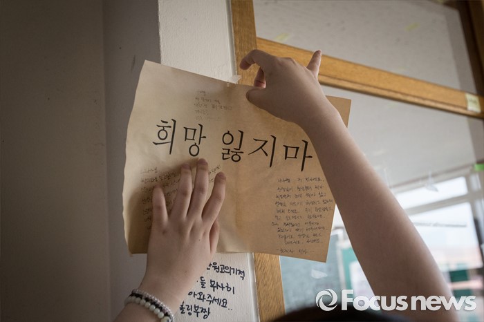 | △ 단원고 교실 이전, '희망 잃지마' |