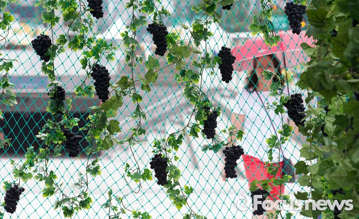 (서울=포커스뉴스) 8일 오전 서울 광화문광장에서 열린 '2016 포도데이' 행사 부스 앞으로 한 시민이 길을 걷고 있다.