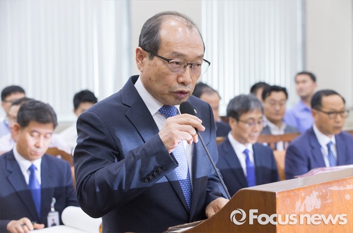 (서울=포커스뉴스) 8일 오후 서울 여의도 국회에서 열린 국방위원회 전체회의에 참석한 장명진 방위사업청장이 제안설명을 하고 있다.