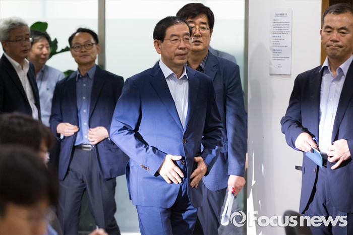 | △ 브리핑룸으로 향하는 박원순 |
