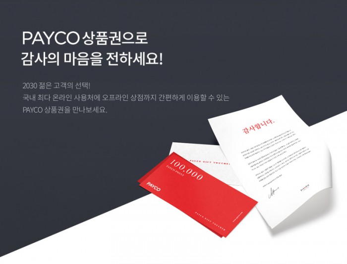 페이코 상품권은 페이코 결제를 지원하는 모든 온·오프라인 상점에서 현금처럼 사용할 수 있는 페이코 포인트 상품권으로, 기업 고객은 직원들에게 복지 및 명절 선물 또는 고객 대상 프로모션용 경품 등으로 활용이 가능하다.