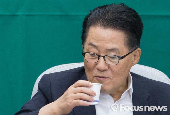 (서울=포커스뉴스) 9일 오전 서울 여의도 국회에서 열린 국민의당 의원총회에 참석한 박지원 비상대책위원장이 물을 마시고 있다.