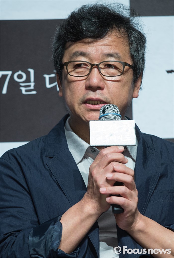 (서울=포커스뉴스) 9일 오전 서울 강남구 압구정 CGV에서 열린 영화 '고산자, 대동여지도' 제작보고회에 참석한 강우석 감독이 인사말을 하고 있다.