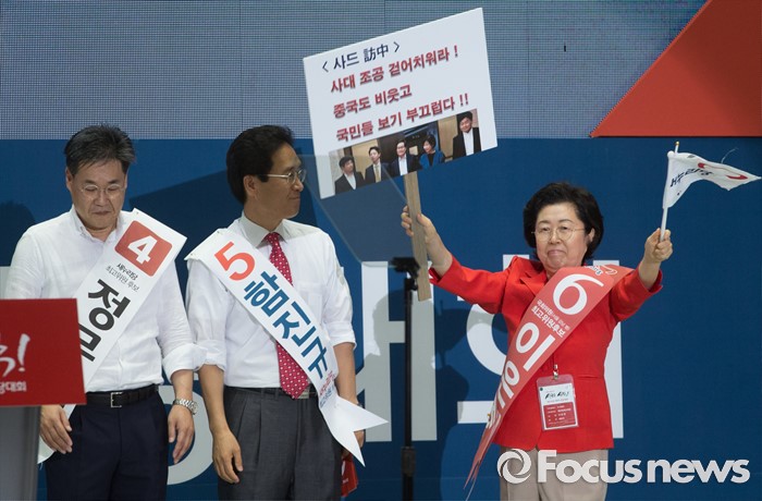 (서울=포커스뉴스) 9일 오후 서울 송파구 잠실실내체육관에서 열린 새누리당 4차 전당대회에 참석한 이은재(오른쪽) 최고위원 후보가 입장하고 있다.