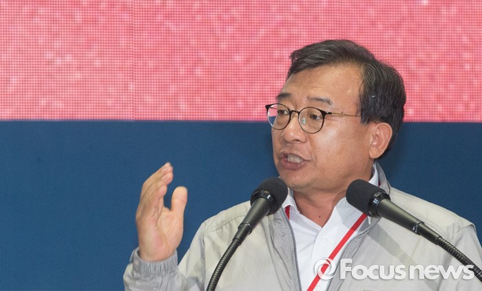 (서울=포커스뉴스) 9일 오후 서울 송파구 잠실실내체육관에서 열린 새누리당 4차 전당대회에 참석한 이정현 당대표 후보가 정견발표를 하고 있다.