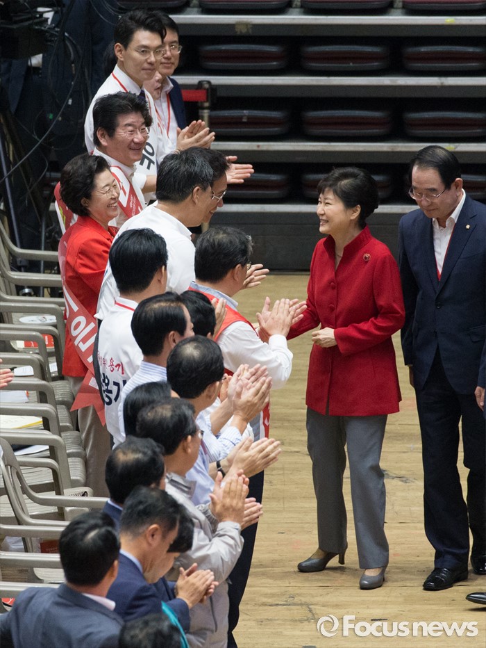 | △ 새누리당 전당대회 참석하는 박 대통령 |