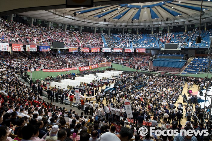 (서울=포커스뉴스) 박근혜 대통령이 9일 오후 서울 송파구 잠실실내체육관에서 제4차 새누리당 전당대회가 열리고 있다.