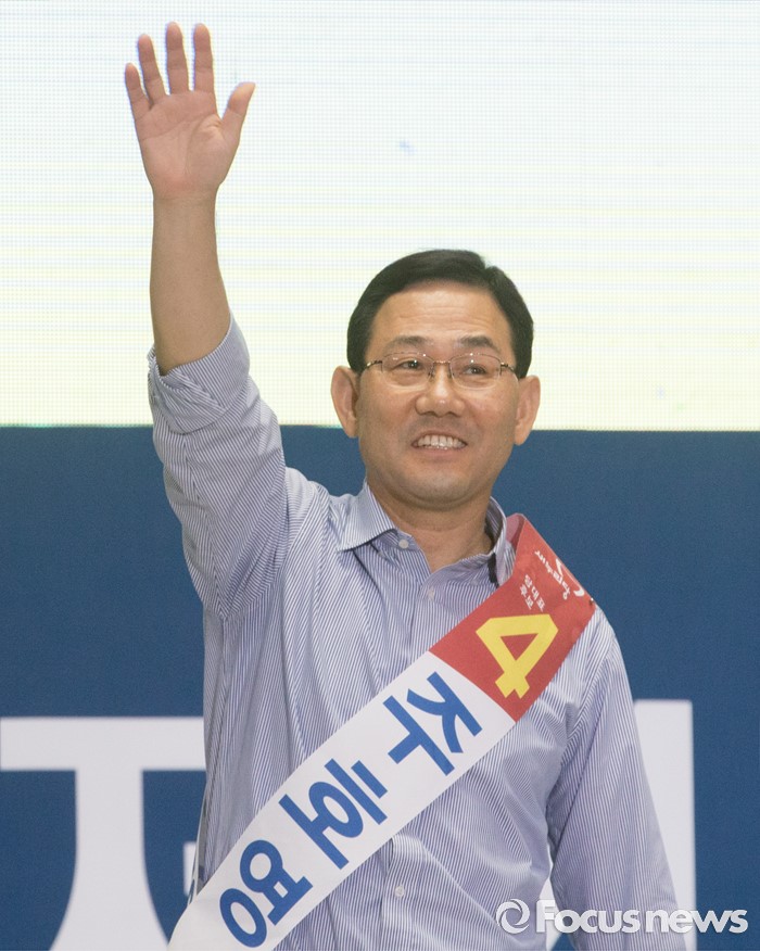 (서울=포커스뉴스) 9일 오후 서울 송파구 잠실실내체육관에서 열린 새누리당 4차 전당대회에 참석한 주호영 당대표 후보가 정견발표에 앞서 인사하고 있다.