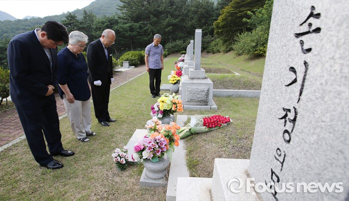 이날 손기정의 딸 손문영 씨와 외손자 이준승 손기정기념재단 사무총장은 9일 국립대전현충원 국가사회공헌자묘역에 묻힌 손기정의 묘를 찾았다. 국립대전현충원은 올림픽 금메달 80주년을 기념해 이달의 현충인물로 손기정을 선정했다.