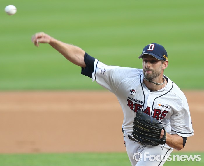 (서울=포커스뉴스) 9일 서울 잠실구장에서 열린 2016 프로야구 KIA-두산 경기에서 1회초 두산 선발투수 니퍼트가 투구하고 있다.