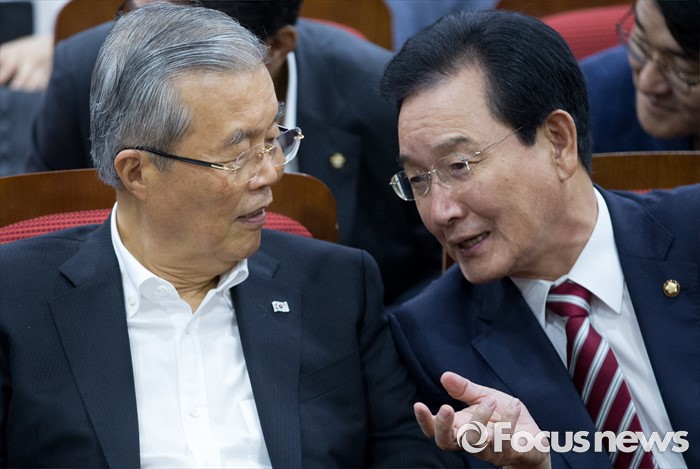 (서울=포커스뉴스) 10일 오전 서울 여의도 국회 의원회관에서 열린 더불어민주당 청년지원사업(청년수당)으로 본 청년 구직지원 및 구직안전망 긴급토론회에 참석한 김종인(왼쪽) 비대위 대표와 변재일 정책위의장이 대화하고 있다.