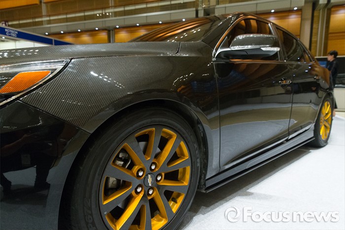 (서울=포커스뉴스) 10일 오후 서울 강남구 코엑스에서 열린 '2016 오토모티브 테크놀로지 엑스포'에 카본 제품이 장착된 자동차가 전시되어 있다.
