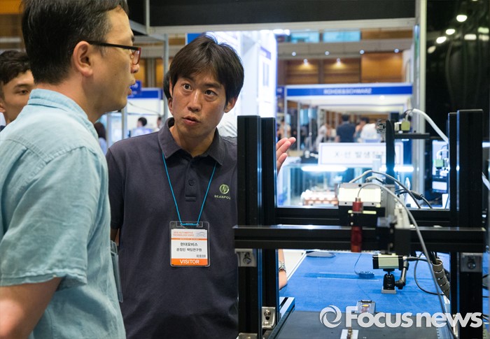 (서울=포커스뉴스) 10일 오후 서울 강남구 코엑스에서 열린 '2016 오토모티브 테크놀로지 엑스포'을 찾은 관람객들이 정밀카메라 개발자와 대화하고 있다.