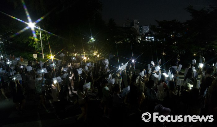 (서울=포커스뉴스) 10일 오후 서울 서대문구 이화여대에서 재학생 및 졸업생들이 최경희 총장의 사퇴를 요구하며 행진을 하고 있다.