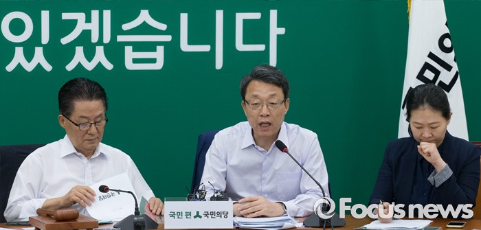 (서울=포커스뉴스) 11일 오전 서울 여의도 국회에서 열린 국민의당 원내정책회의에 참석한 김성식(가운데) 정책위의장이 발언하고 있다.