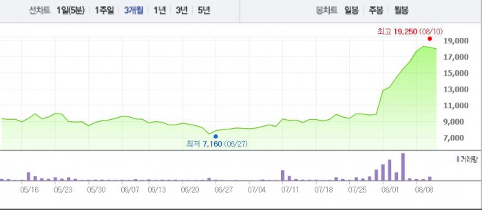 1달 전 주가와 비교, 92.92% 상승