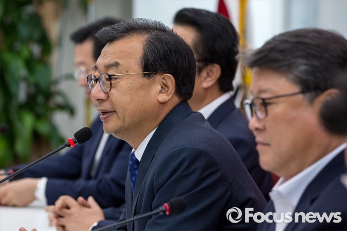 (서울=포커스뉴스) 이정현 새누리당 대표가 11일 오전 서울 여의도 국회에서 열린 최고위원회의에 참석해 취재진에게 지도부를 비롯한 최고위원의 모두발언 공개 없이 비공개 회의로 전환한다고 설명 하고 있다.