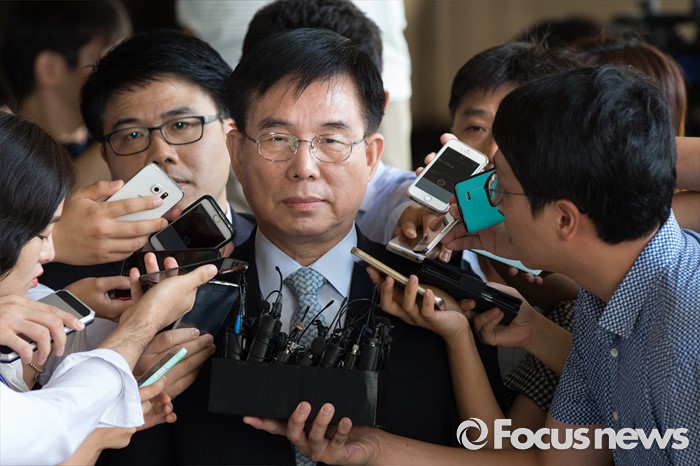 (서울=포커스뉴스) 법인세 등 부정 환급 의혹을 받고 있는 허수영 롯데케미칼 사장이 11일 오전 서울 서초구 서울중앙지검으로 출석해 취재진의 질문을 받고 있다.