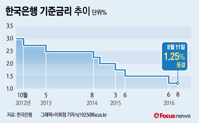 (서울=포커스뉴스) 11일 한국은행은 금융통화위원회 정례회의를 열고 8월 기준금리를 기존 연 1.25%로 동결했다.