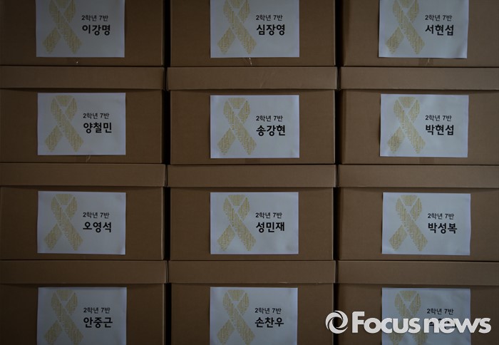 (안산=포커스뉴스) 세월호 참사에서 희생된 단원고등학교 학생들의 교실 이전 절차가 진행 중인 11일 오전 경기도 안산시 단원고등학교 기억교실 복도에 아이들 유품 및 기록물 보관함이 쌓여져 있다.