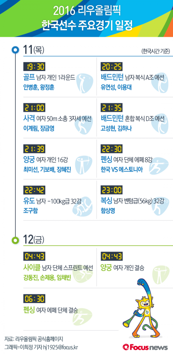 | △ [그래픽] 2016 리우올림픽 한국선수 주요경기일정 |