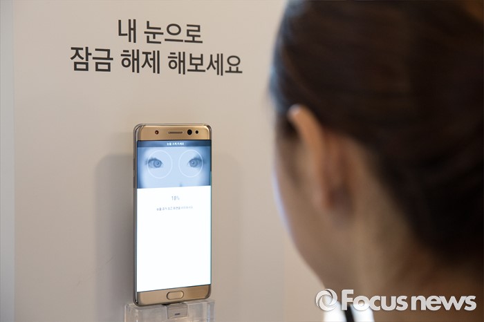 (서울=포커스뉴스) 전후 양옆 둥글게 '엣지' 모양을 한 갤럭시노트7을 쥐어들고 설정 버튼을 눌렀다. 잠금화면 및 보안설정 기능에서 '홍채'를 클릭한다. 그리고 두 눈을 화면에 가져다 댔다. 하나, 둘, 셋…