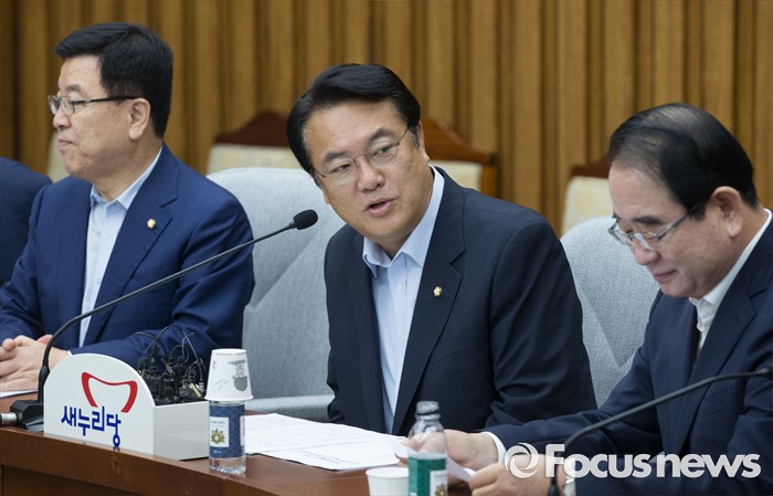 (서울=포커스뉴스) 정진석(가운데) 새누리당 원내대표가 12일 오전 서울 여의도 국회에서 열린 원내대책회의에 참석해 모두발언을 하고 있다.